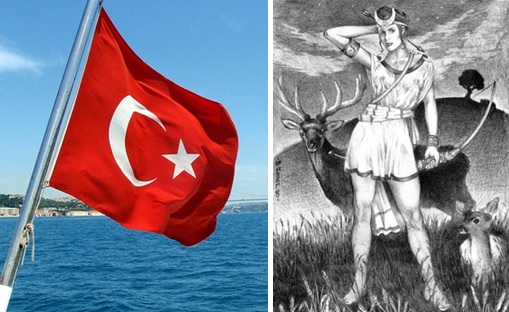 Deși utilizarea simbolurilor sfinte este interzisă prin lege la musulmani, luna crescătoare împodobește steagurile câtorva națiuni de această religie, și a fost adoptată pentru a simboliza, neoficial, credința islamică. Luna crescătoare este unul dintre cele mai vechi simboluri ale umanității, reprezentând aspectul feminin al vieții, venerat sub forma zeiței grecești Artemis, al cărei cap era întotdeauna înconjurat de o lună crescătoare. În timpul Imperiului Roman, același simbol a însoțit-o pe Diana, zeița vânătorii și a Lunii, despre care se spune că proteja fecioarele.